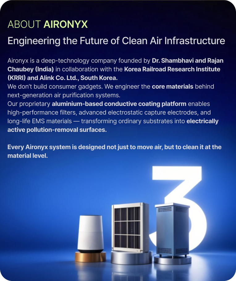 Aluminium-Coated Conductive Media Air first passes through Aironyx's proprietary Al-coated conductive filter layer